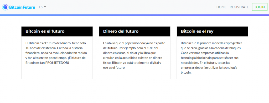 - La plataforma Bitcoin Future está en los robots de comercio automatizado líderes y más populares que están actualmente disponibles. Hemos analizado este robot y hemos encontrado que es confiable. Esta plataforma ofrece a los operadores las mejores y excelentes oportunidades de inversión rentables para sus operadores.