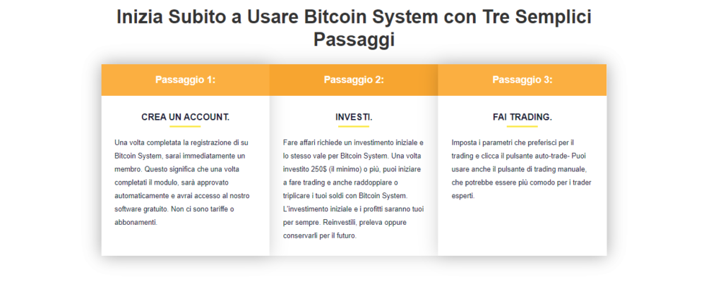 Se requiere que un usuario abra una cuenta con Bitcoin System y luego de eso, deposite el fondo para comenzar a operar en vivo. El proceso es sencillo.