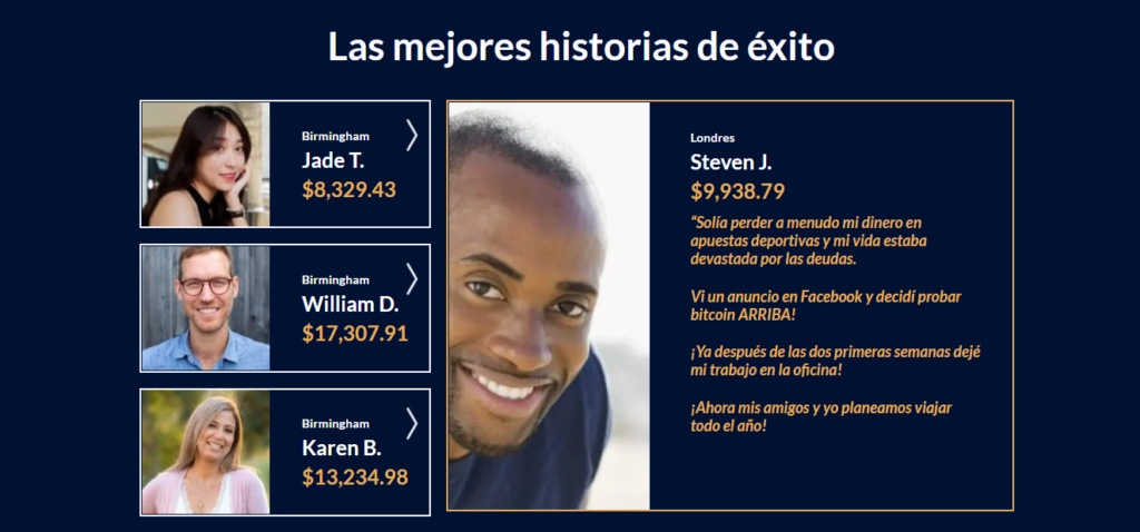Los usuarios de bitcoin UP han otorgado una calificación de 4.7 sobre 5 en el sitio de revisión Trustpilot. Los testimonios reales de los comerciantes están disponibles en el sitio web oficial de bitcoin UP, donde los comerciantes han compartido la experiencia con este software comercial en línea y han recibido comentarios positivos, ya que están obteniendo millones de ganancias con esto.