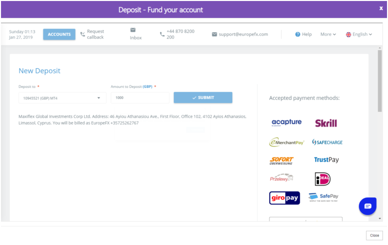 El monto mínimo requerido es de $ 250 y los métodos de pago son varios: Skrill, MerchantPay, GiroPay, SafePay, Visa y Master Credit. Para empezar, le recomendamos que no invierta más de $ 250. Luego, cuando se sienta más seguro con la plataforma, puede intentar buscar cantidades más altas.