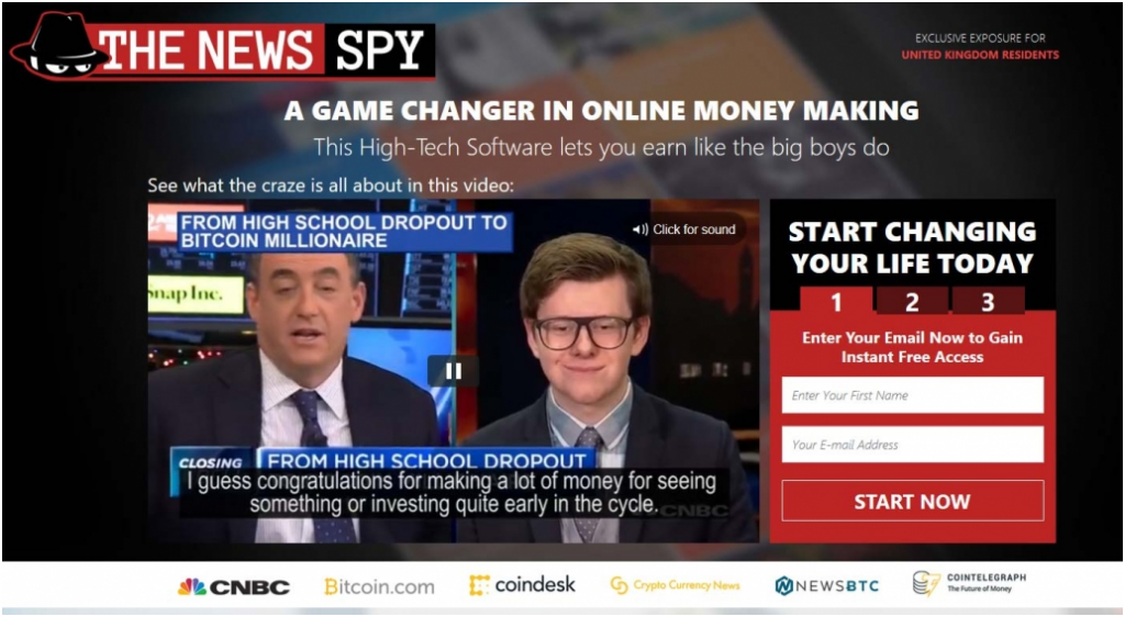 Hoy en esta reseña te voy a mostrar todo lo que necesitas para conocer un software que se llama The News Spy, y este software aparentemente te va a ayudar a convertirte en una persona millonaria en tan solo unos días y sin ningún tipo de experiencia. en el negocio de las criptomonedas, además vas a poder hacer todo ese dinero desde la comodidad de tu hogar o donde estés porque el software lo hará todo por ti, eso es lo que la gente que está detrás del software The News Spy dice el sitio web, pero no sabemos si todo lo que dicen es completamente cierto.