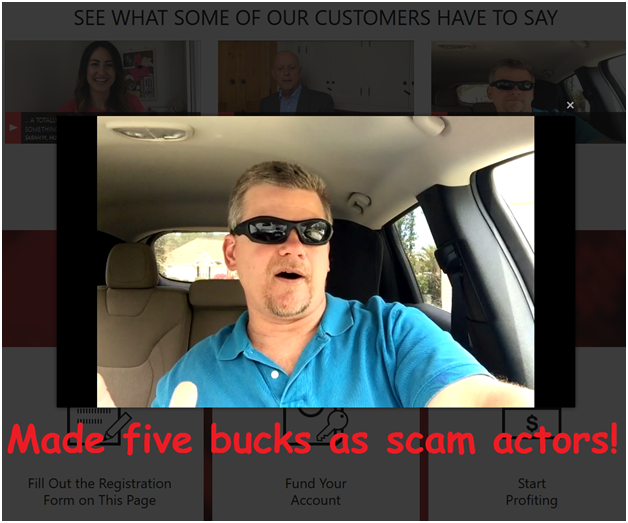 La página de inicio de News Spy contiene tres videos de supuestos usuarios, que informan cómo ganaron miles de dólares. Estos, sin duda, fueron comprados en Fiverr.com. Fiverr es una página de inicio en la que los aficionados ofrecen sus servicios. Además de artistas gráficos, músicos y mucho más, también están los servicios perversos para recitar un texto de memoria. Los estafadores suelen utilizarlos para publicar reseñas falsas. En los tres videos interpretan actores reconocidos, especialmente el correcto es conspicuo, ya que siempre graba videos en su auto. Hablemos a continuación sobre las experiencias reales de los usuarios que terminan en nuestra bandeja de entrada: